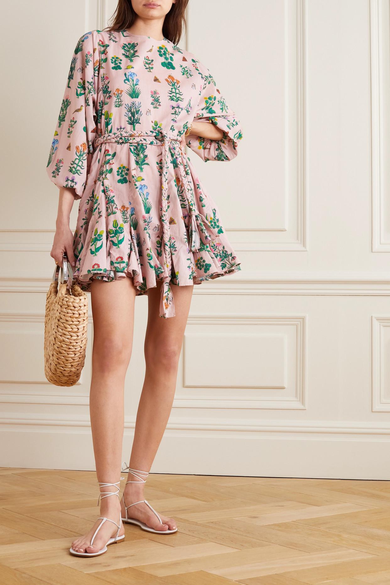 Rhode Ella Belted Floral Print Cotton Voile Mini Dress In Pink Lyst